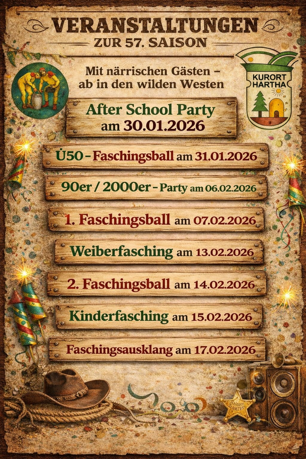 Willkommen im närrischen Wilden Westen des Kurortes Hartha!